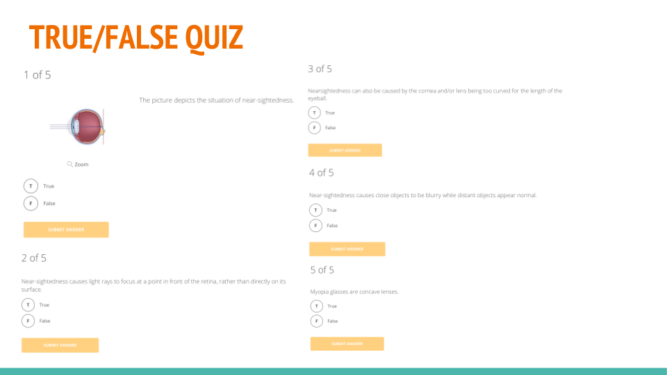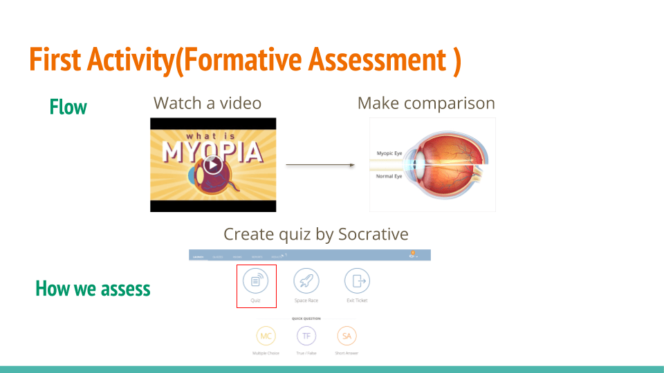 | Nice2MeetU | Do you want to take off your glasses | 1. Far-sightedness may be a misconception 2. Some of the examples of bad habits are not clear | 1. Provide a video that tells the difference between short-sightedness and far-sightedness 2. Create a forum and ask the students to discuss in a group in the forum. The teacher will observe their discussion. |